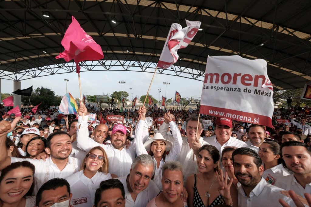 Te respeto porque eres comprometida, íntegra y te preocupa la gente. Lo importante no es hacerlo en campaña, sino todos los días y Mara quiere que Quintana Roo se una a un gran equipo que es la 4T, con un presidente preocupado por el Sur. Será una gobernadora que piensa igual que él y con quien vamos a trabajar en equipo para que las cosas cambien, expresó mientras cientos de voces coreaban “Es un honor, estar con Obrador”.