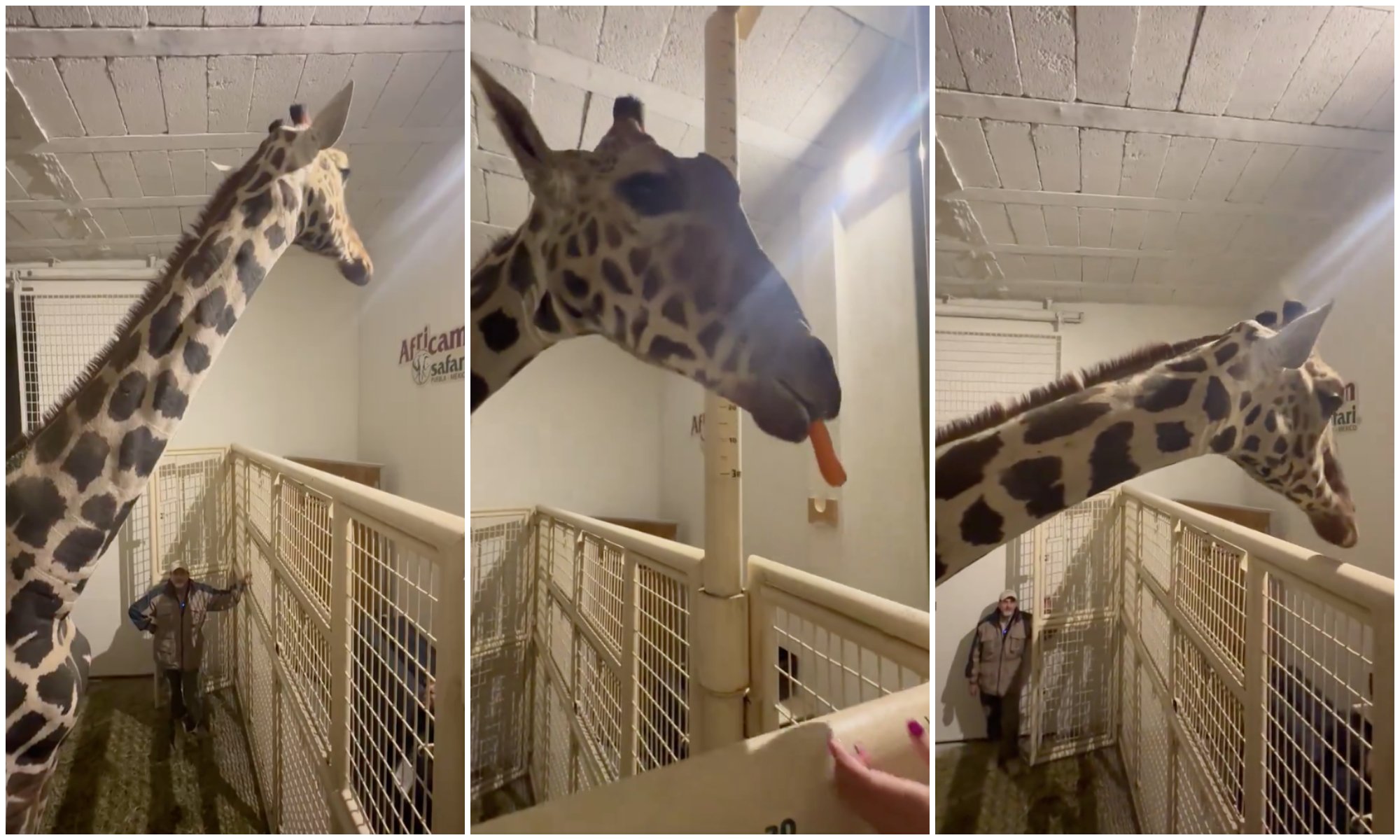 La jirafa macho de 4 años de edad recorrió un aproximado de 2 mil kilómetros hasta llegar a su nuevo hogar: el parque Africam Safari, en el estado de Puebla.