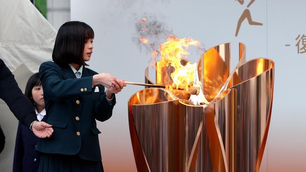 Fue mostrada brevemente al público en la región de Fukushima (noreste) antes del inicio del relevo de la antorcha, que debía recorrer todas las regiones del archipiélago antes del inicio de los Juegos que inicialmente iban a tener lugar este verano.