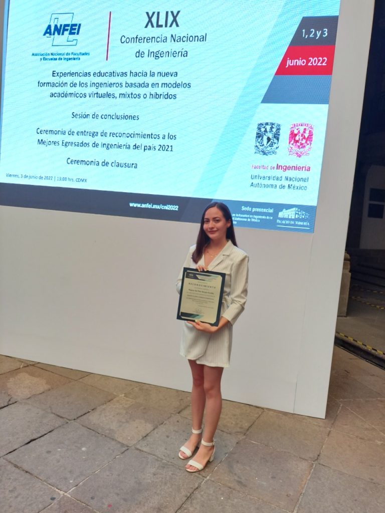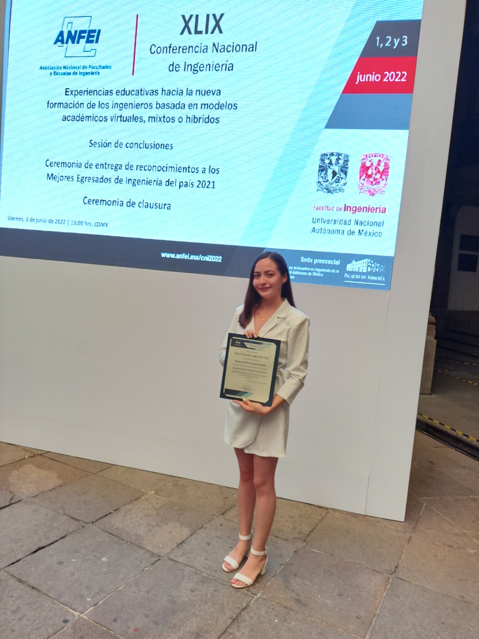 Por tal motivo, participó en la Ceremonia de Reconocimientos a los Mejores Egresados de Ingeniería del País en el Año 2021, en las instalaciones del Palacio de Minería de la Facultad de Ingeniería de la Universidad Nacional Autónoma de México, en el marco de la XLIX Conferencia Nacional de Ingeniería organizada por la ANFEI, el pasado 3 de junio.