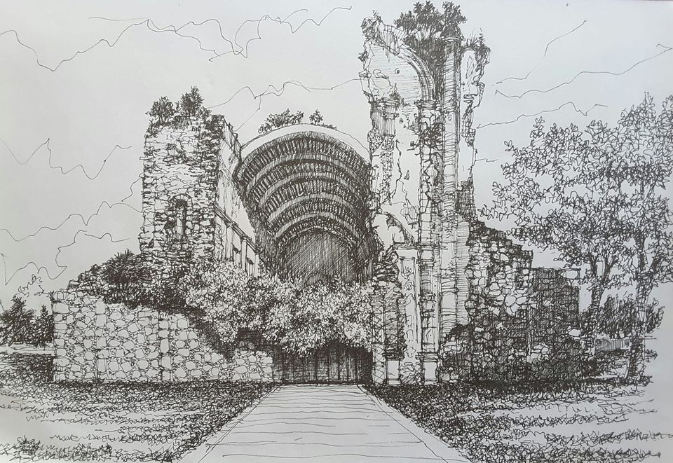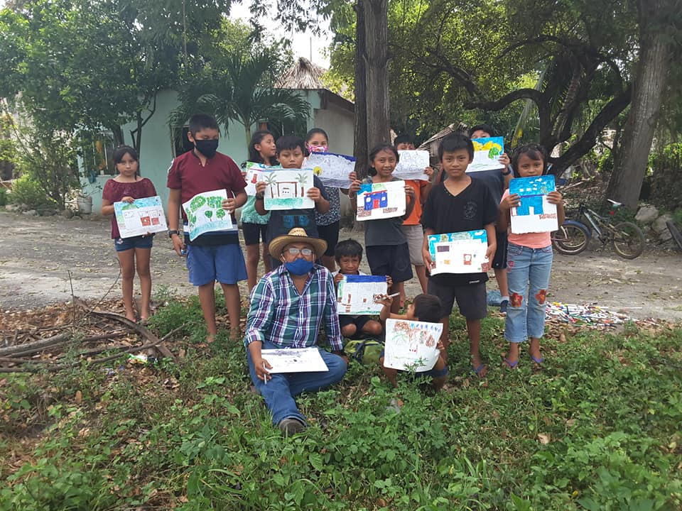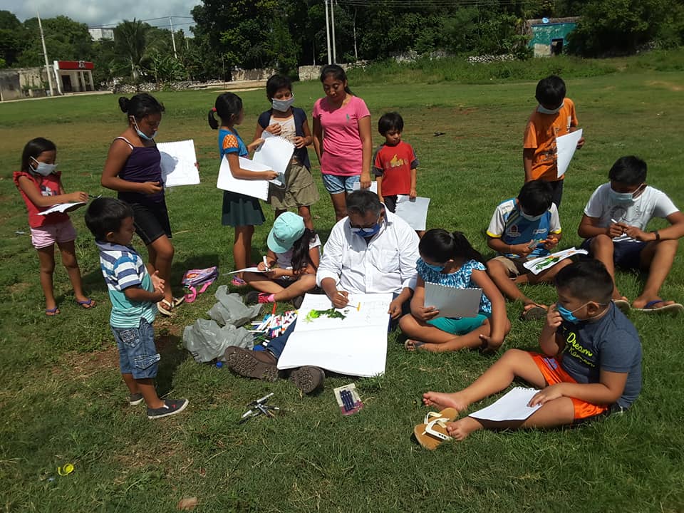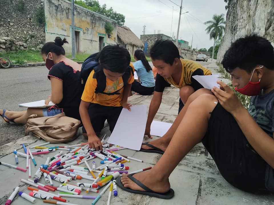 Felipe Carrillo Puerto, Q. Roo, Jueves 24 de septiembre del 2020, poderycrítica.- Niños y jóvenes de la comunidad de Tihosuco registran el valor histórico y simbólico de su entorno, a través de técnicas artísticas impartidas por el arquitecto Héctor Pérez Palomo, maestro de la Escuela Itinerante de Arte.