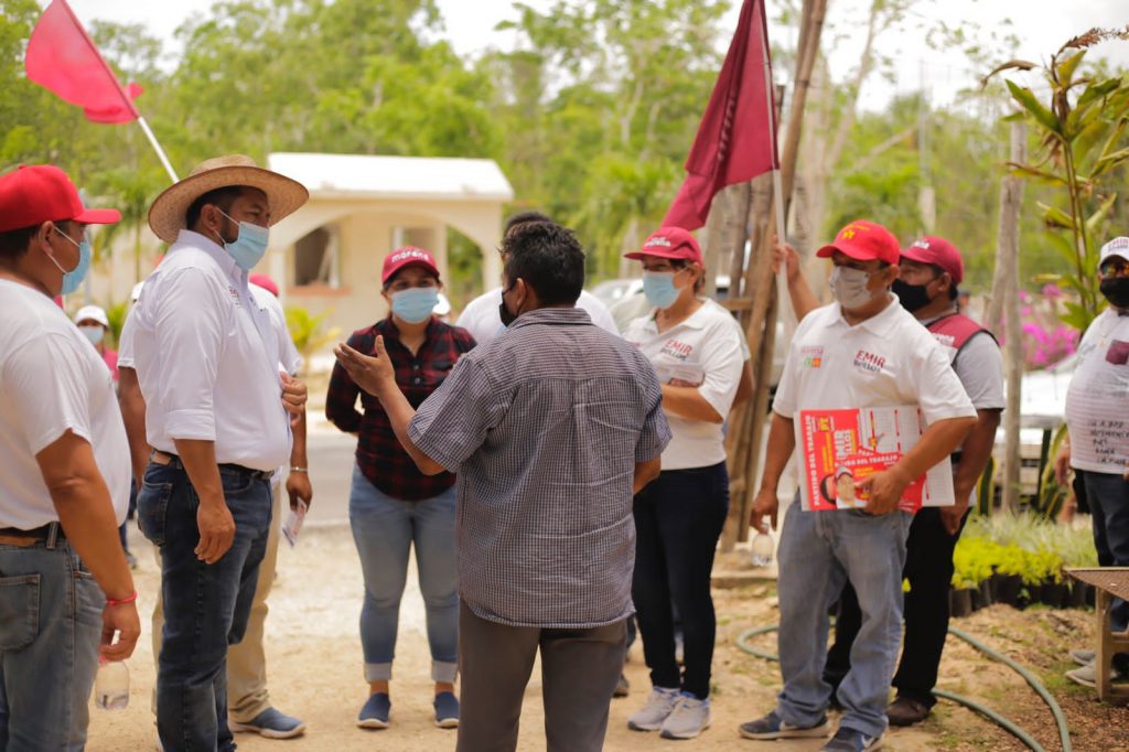 Kantunilkín, Quintana Roo, viernes 21 de mayo 2021, poderycritica.- A tan solo 13 días del cierre de campaña, el abanderado de la coalición » Juntos Hacemos Historia» Emir Bellos, continúa caminando sin cansancio alguno, por lo que retomó su recorrido en la comunidad de la Esperanza y más tarde en la cabecera municipal, acompañado del candidato a Diputado Federal Juan Carrillo y la candidata suplente Euterpe Gutiérrez, mejor conocida como Tepy.