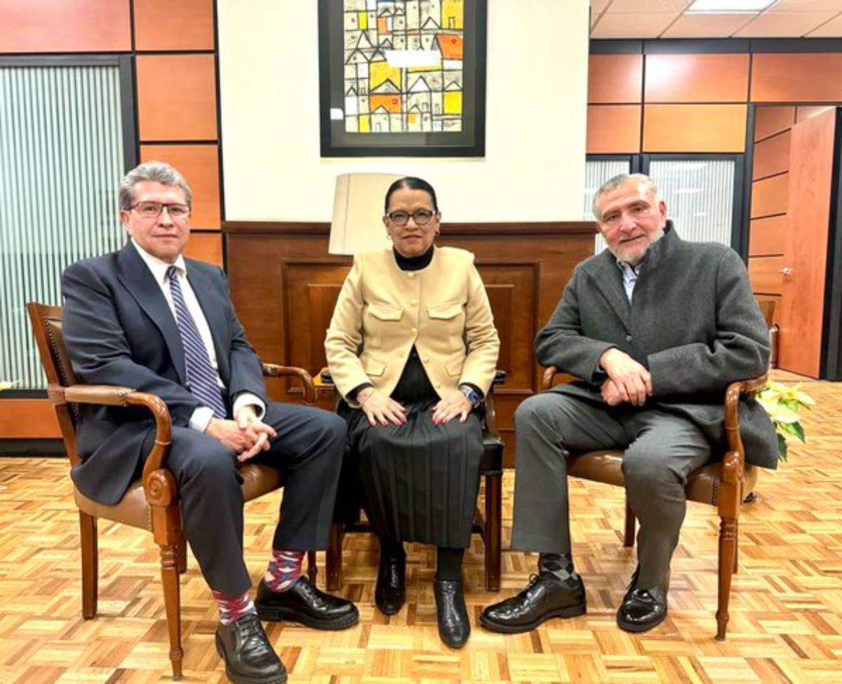 El anuncio lo hizo la secretaria Rodríguez Velázquez desde su cuenta en la red social X y acompañó la decisión con una fotografía en la que ella aparece en medio de Monreal Ávila y Augusto López, quienes a diferencia de otras ocasiones no muestran una sonrisa franca y natural derivada del encuentro a puerta cerrada.
