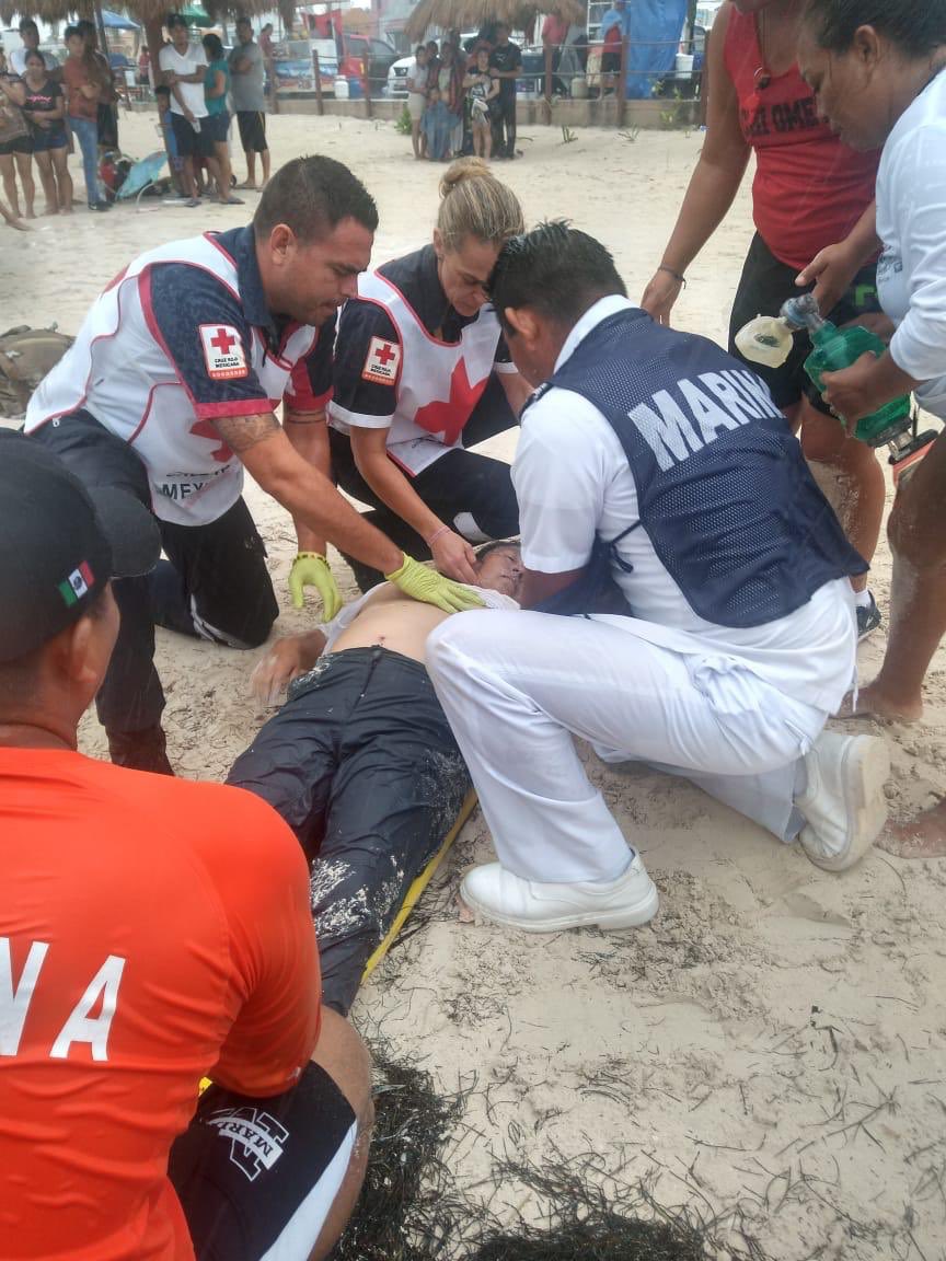 La tercera acción se llevó a cabo cuando elementos navales que se encontraban desplegados en el puesto de socorro de Playa del Niño en Cancún, Quintana Roo, fueron alertados debido a que una persona de sexo femenino, de 60 años y de nacionalidad mexicana, se encontraba inconsciente y con signos vitales débiles , por lo que de forma inmediata elementos de Sanidad Naval acudieron al lugar y le realizaron procedimiento de reanimación cardiopulmonar (RCP), logrando estabilizarla para posteriormente ser trasladada por una ambulancia de la Cruz Roja a un hospital de la localidad para su atención médica especializada.