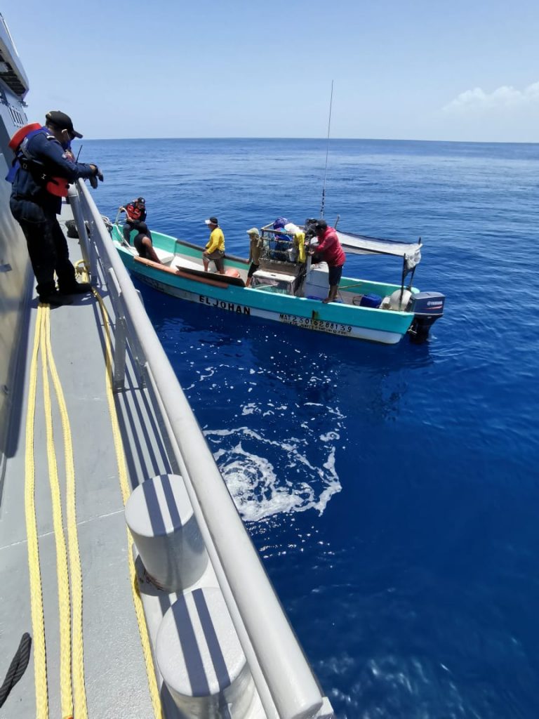 Por lo anterior, se ordenó el despliegue inmediato de una Patrulla Costera de la Quinta Región Naval, una embarcación tipo MLB de la Estación Naval de Búsqueda, Rescate y Vigilancia Marítima (ENSAR) de Isla Mujeres, así como una aeronave tipo Persuader, localizando a citada embarcación a 19 millas náuticas (35 kilómetros aproximadamente) al noreste de Isla Contoy, Q. Roo, la cual no había podido regresar a puerto por haber presentado fallas en su motor. Por lo que, al ser localizados se les brindó los tripulantes agua y alimentación, para posteriormente trasladarlos al muelle de la Quinta Región Naval.