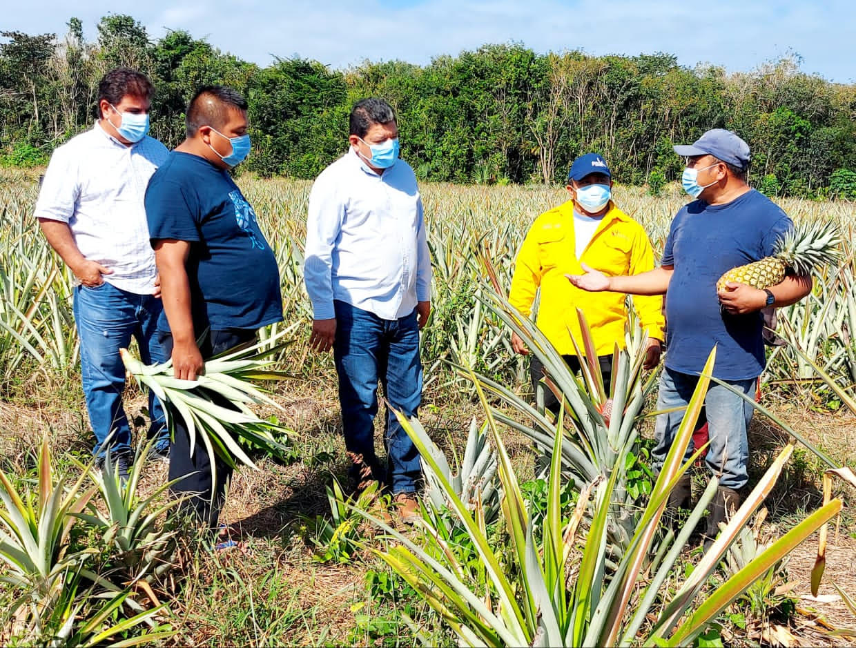 Bacalar, Q. Roo, Miércoles  10 de Marzo de 2021, poderycrítica.-  Este miércoles, el secretario de Desarrollo Agropecuario, Rural y Pesca (SEDARPE), Luis Torres, en compañía de un grupo de productores del ejido Divorciados del municipio de Bacalar recorrió la Parcela de Andrés Ciau Noh en donde se cultiva piña.