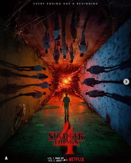 Poco después Netflix compartió otro póster en donde por fin confirmó que la cuarta temporada de Strangers Things tendrá dos partes y anunció la fecha de estreno de ambas. El volumen 1 llegará el próximo 27 de mayo mientras que la segunda parte se estrenará en Netflix el 1 de julio.