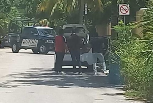 El dinero era llevado en este coche blanco desde Playacar, pero al pasar por la avenida Juárez con la 55, estos trabajadores fueron interceptados por dos sujetos en motocicleta, que los amenazaron con armas de fuego, para que se detuvieran.