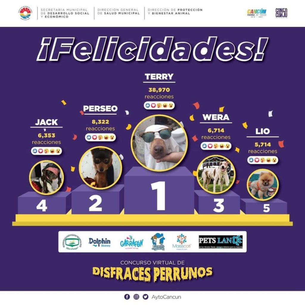 Cancún, Q. Roo, Sábado 21 de Noviembre de 2020, poderycrítica.- Esta mañana se llevó a cabo la entrega de premios del concurso de perritos que fueron disfrazados con motivo del Halloween.