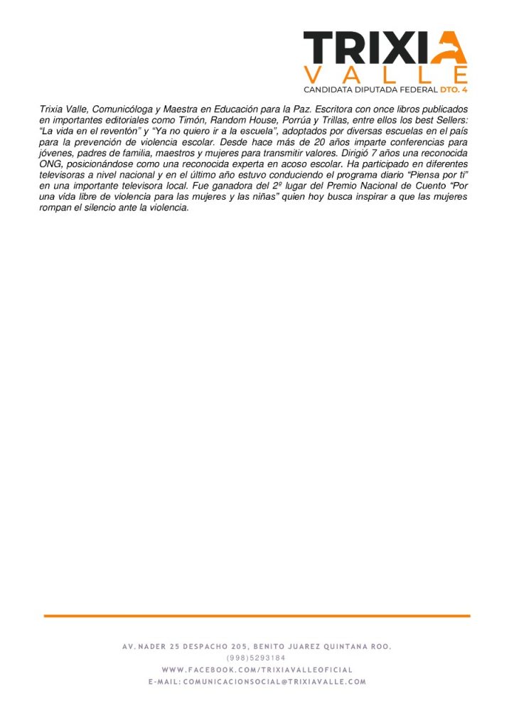 También ofrece como regalo a todos los niños y las niñas del mundo, la descarga GRATIS de sus cuentos “Romina y Nico” en español, inglés y maya para el manejo de sus emociones https://www.trixiavalle.com/blog/314-te-comparto-los-cuentos-de-romina-ahora-en-maya