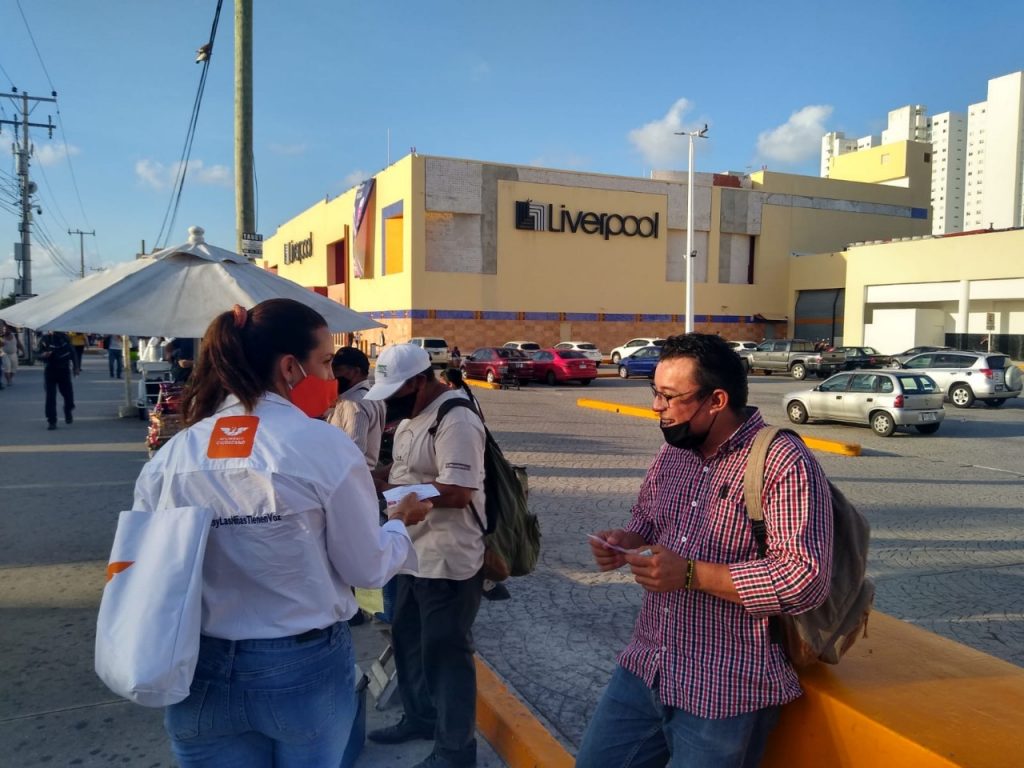 Cancún, Q. Roo, jueves 29 de abril de 2021, poderycrítica.- La candidata Trixia Valle Herrera de Movimiento Ciudadano, realizó una entrega de volantes en Av. Tulum, afuera de Plaza Las Américas, acompañada solamente de Jonathan Lizama, quien es la persona que lleva la agenda de campaña. Trixia se acercó principalmente a las niñas y a los niños, como en todas sus caminatas para darles un mensaje personal, viéndolos a los ojos para pedirles que sigan estudiando. Declaró a un participante: “Es triste ver que las niñas y los niños dejan la escuela en la secundaria, no podría asegurar las razones, pero considero que muchos lo hacen por el acoso que sufren y si sin estudiosos más ya que el mundo nos dice que ser flojo, no estudiar y pasar el tiempo riéndote de memes y chistes, es parte de ser ´cool´ o muy de onda, por lo que al llegar a los 12 o 13 años y querer pertenecer a un entorno que les da este mensaje, deciden dejar la escuela.” El ciudadano afirmó lo dicho y propuso que se hagan campañas sobre la importancia del estudio para progresar en la vida y ella se comprometió a ponerlo en su iniciativa de ley para que la educación sea actividad esencial y además promover el amor al saber, aprender, conocer y crear.