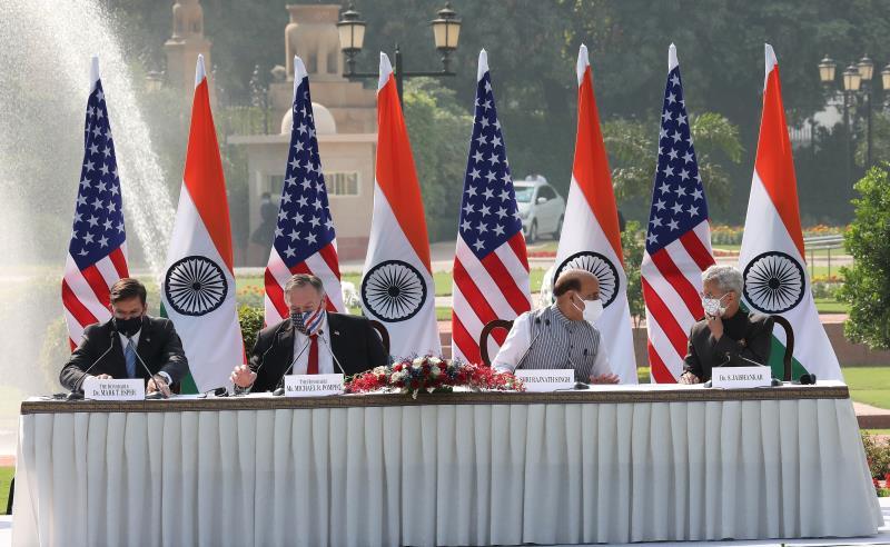 La firma del acuerdo se materializó en Nueva Delhi en la tercera ronda de las conversaciones ministeriales India-EEUU 2+2, en las que el jefe de la diplomacia estadounidense, Mike Pompeo, y el secretario de Defensa de Estados Unidos, Mark Esper, se reunieron con sus homólogos indios, Subrahmanyam Jaishankar y Rajnath Singh.
