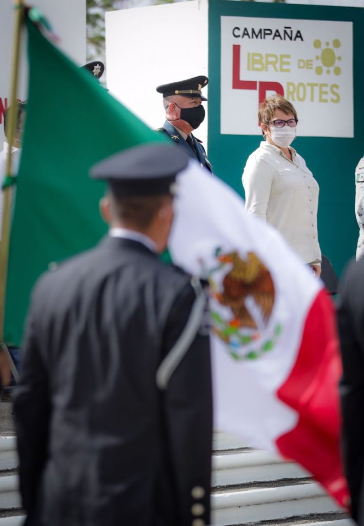 Laura Beristain aprovechó el momento para pedir un minuto de silencio por las personas fallecidas a causa del COVID-19 y se solidarizó con sus familiares; posteriormente reconoció al personal médico y policías por su invaluable labor al frente de la primera línea de batalla para garantizar la salud y seguridad de los ciudadanos.