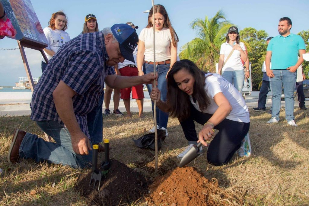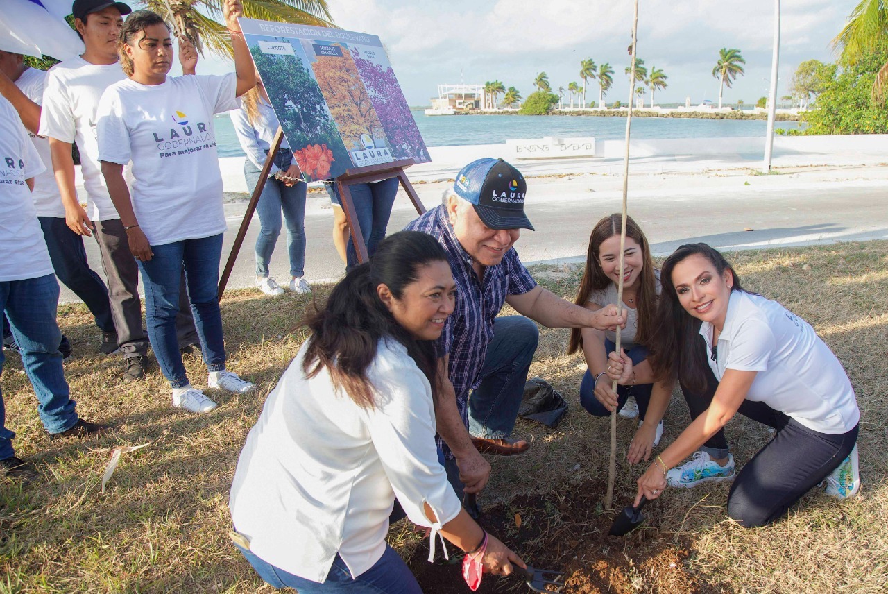 Asimismo, durante la mañana de hoy la candidata Laura Fernández Piña, de la coalición Va Por Quintana, acudió al Boulevard Bahía de Chetumal para realizar acciones de reforestación. En el sitio coló árboles de la especies endémica conocida como maculis y ciricote, que por sus flores de bellos colores son apreciadas en la región, por lo que hizo un llamado a la población a cuidar el ambiente y proteger la áreas verdes.