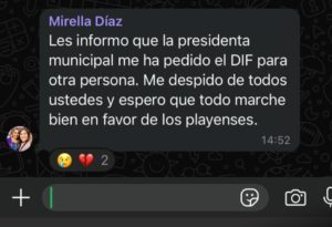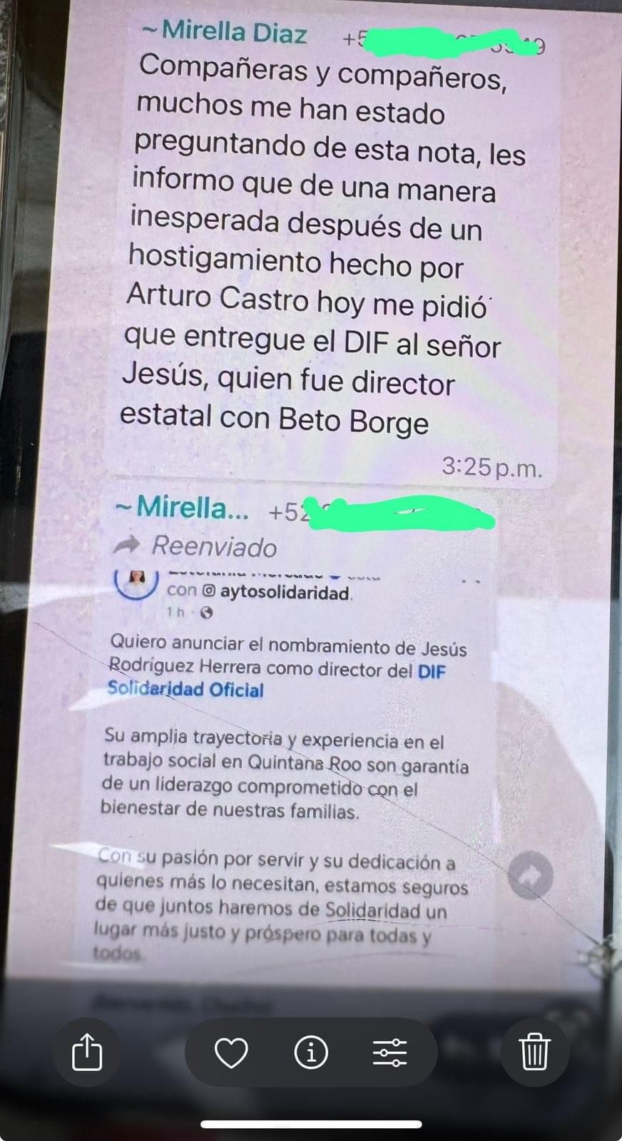 Sentada cómodamente en el que fuera su centro de operaciones financieras y con la seguridad de haber engañado a Estefanía Mercado, la ambiciosa e irrellenable Mirella Díaz Aguilar se enteró del nombramiento de Rodríguez Herrera, situación que le provocó un berrinche que difundió en sus grupos de WhatsApp acusando al nuevo funcionario de Solidaridad de haber sido empleado de Roberto Borge Ángulo.