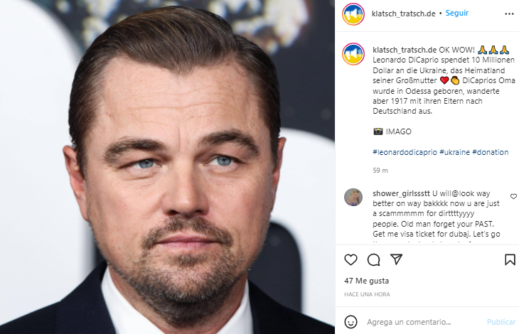 PODER Y CRÍTICA | REDACCIÓN | Leonardo DiCaprio es uno de los famosos que ha demostrado defender diferentes causas y constantemente muestra la lucha que hace por parar el cambio climático. Ahora el actor se mostró preocupado por lo que sucede en el conflicto entre Rusia y Ucrania y decidió hacer una donación a favor de los ucranianos.