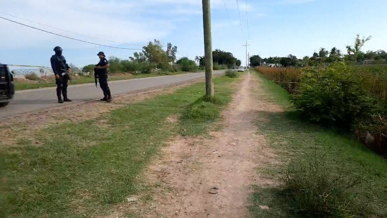 Peritos de la Fiscalía General del Estado acordonaron el área al descubrir que el cuerpo de una mujer se había descubierto en el dren hidráulico que cruza la comunidad de Gabriel Leyva, hasta donde se presentaron los familiares de la víctima.