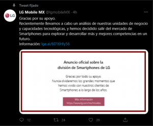 Aunque sale del mercado, el inventario actual de teléfonos LG seguirá estando disponible para la venta. En México, LG cuenta con el 6.7% del mercado de smartphones, según datos de The Competitive Intelligence Unit (CIU).
