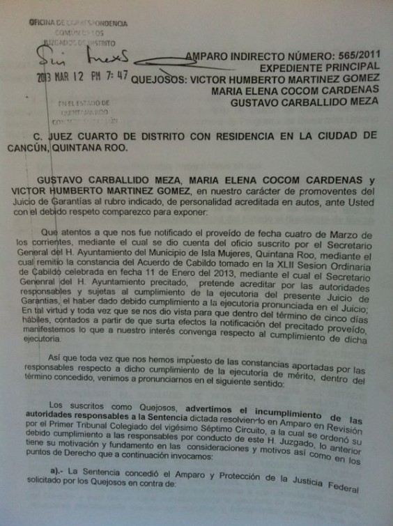 Las familias presentaron un amparo contra la decisión, que ganaron pero el municipio no la ha acatado, así como una queja contra la Alcaldesa, que terminó en una recomendación por parte de la Comisión de Derechos Humanos del estado de Quintana Roo. También interpusieron una demanda de juicio político ante el Congreso local, que fue improcedente ante la falta de causas “graves”. Meses más tarde le pasaron la factura y perdió la elección para ser nuevamente alcaldesa.