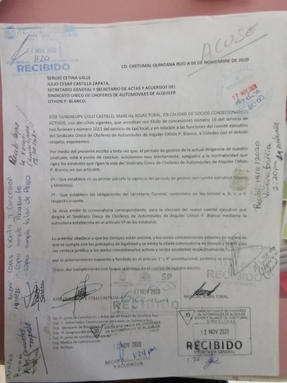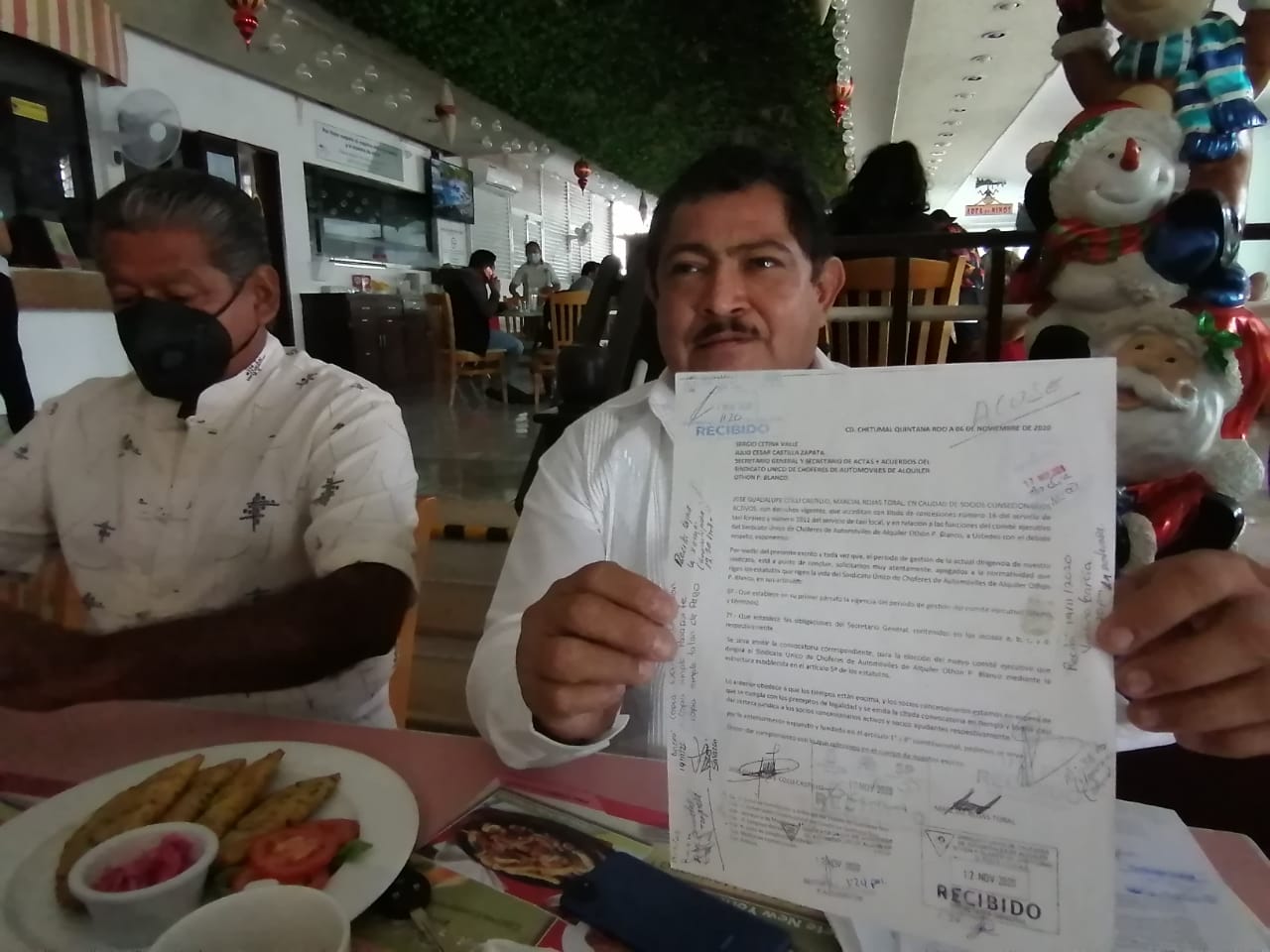 Chetumal, Q. Roo, Viernes 11 de Diciembre de 2020, poderycrítica.- Pese a la mala gestión al frente del Sindicato Único de Choferes de Automóviles de Alquiler (Suchaa), Sergio Zetina Valle pretende imponer su sucesor aunque con ello viole los estatutos denunció José Collí Castillo, primer aspirante a la nueva directiva del gremio.