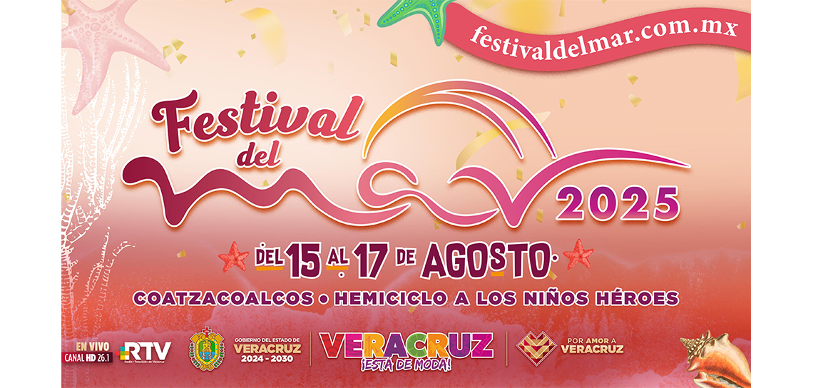 PODER Y CRÍTICA | REDACCIÓN | El Gobierno del estado de Veracruz celebrará del 15 al 17 de agosto el Festival del Mar en Coatzacoalcos, evento que integra reflexión, cultura y música con la participación de reconocidas figuras del arte nacional e internacional.