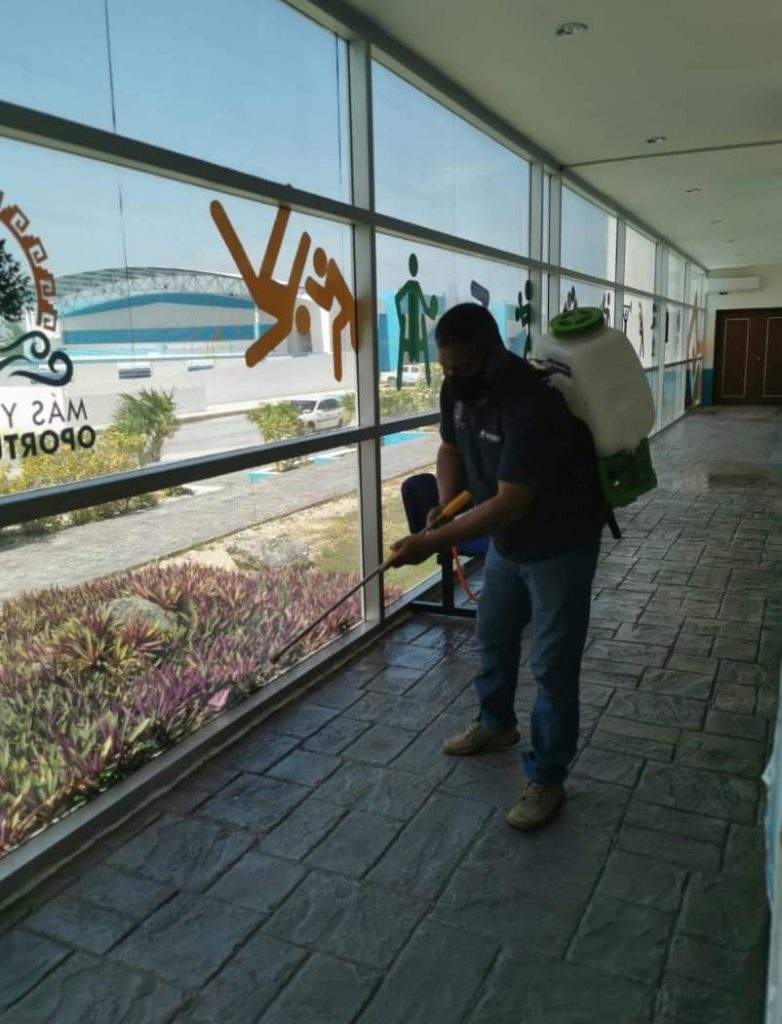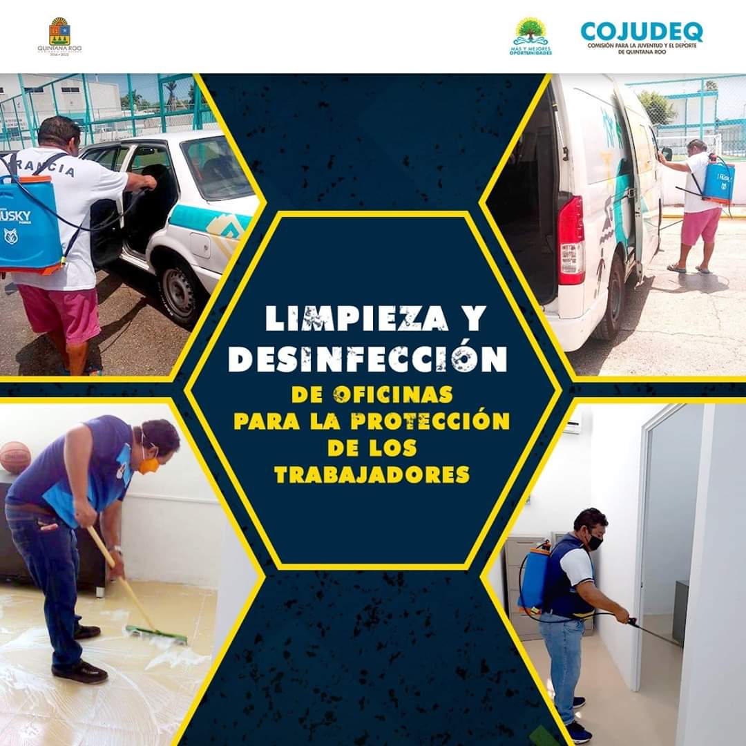 Chetumal, Q. Roo, Jueves 02 de Julio de 2020, poderycrítica.- Con el fin de proteger al personal de la Comisión para la Juventud y el Deporte de Quintana Roo, COJUDEQ, así como a las personas que vayan a realizar algún trámite, se lleva a cabo la limpieza y desinfección de las oficinas, vehículos.