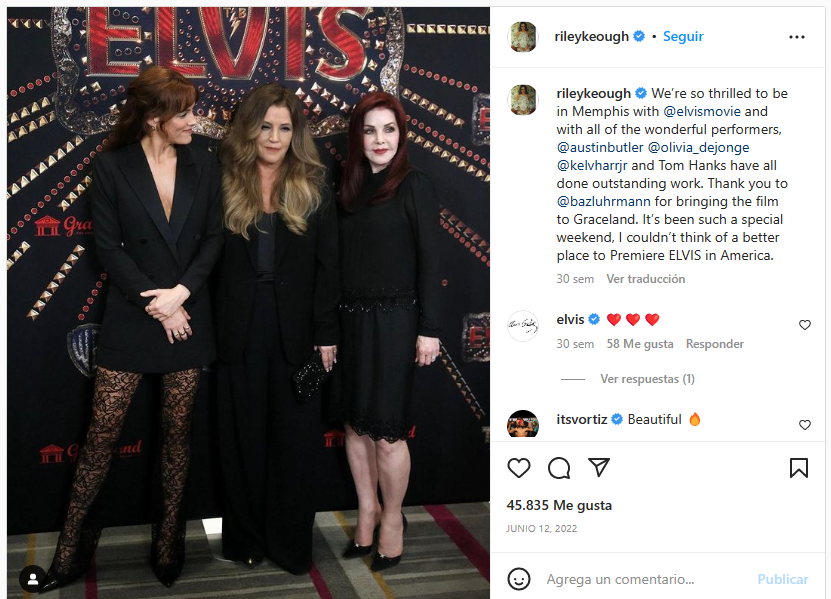 Hace solo unos días Presley asistió a la ceremonia de los Globos de Oro junto a su madre Priscilla, donde recibieron un agradecimiento del actor Austin Butler, quien ganó el premio a mejor actor de drama por su poderosa interpretación en «Elvis».