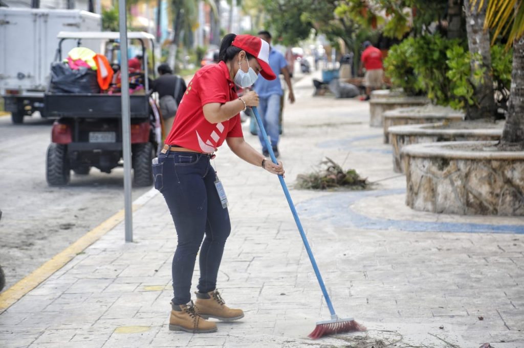 Isla Mujeres, Q. Roo, Jueves 08 de Octubre del 2020, poderycrítica.- Tras el paso del huracán «Delta» por el municipio de Isla Mujeres, cinco cuadrillas de funcionarios de gobierno y voluntarios pertenecientes al programa «Isla Mujeres Verde y Saludable», trabajan desde temprana hora de este jueves en tareas de limpieza de calles y avenidas, con el objetivo de continuar con el proceso de recuperación económica.