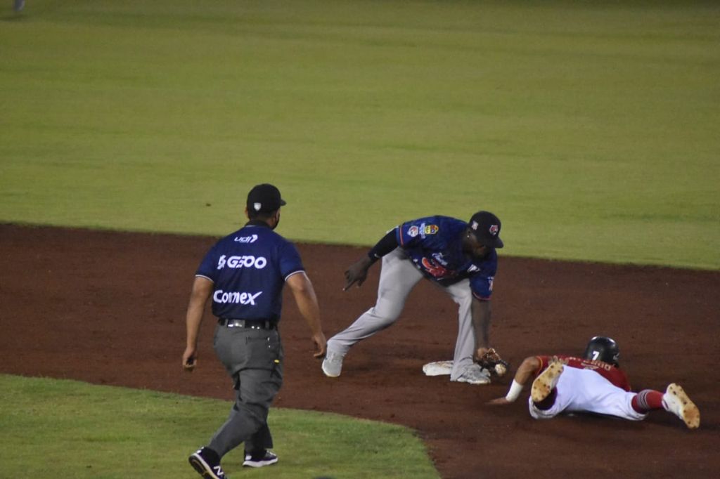 Pero en la parte alta de la octava entrada los quintanarroenses igualaron el score 3-3, con cuadrangular solitario por el prado izquierdo de parte del colombiano Reynaldo Rodríguez (3).