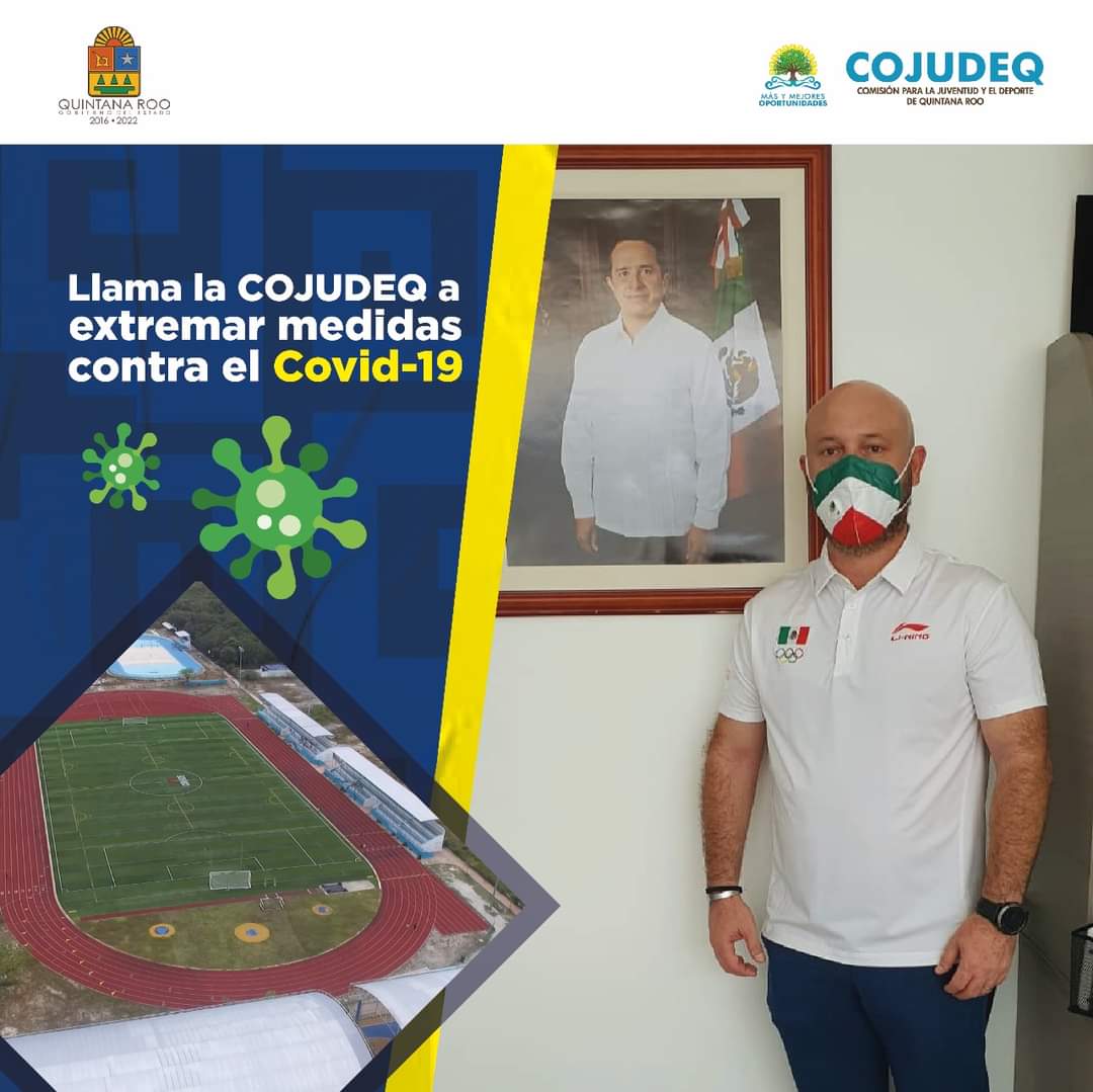 Chetumal, Q. Roo, Martes 22 de septiembre del 2020, poderycrítica.- El titular de la Comisión para la Juventud y el Deporte de Quintana Roo (COJUDEQ), Antonio López Pinzón, hizo un llamado a la comunidad deportiva de todo el estado para extremar las medidas sanitarias recomendadas por las autoridades de Salud, para de esta manera evitar que se presenten más casos de coronavirus en el estado.