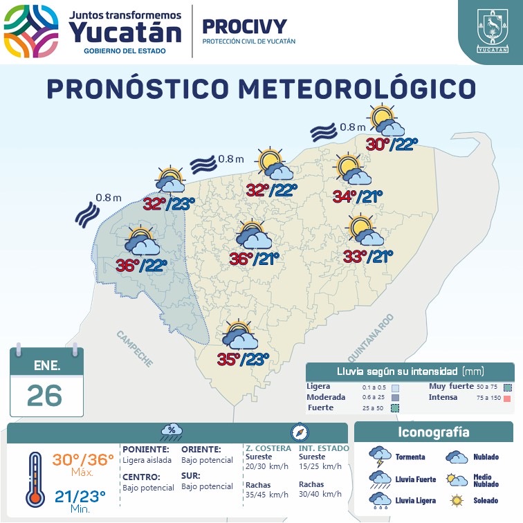 Esta información es ya compartida a todos los municipios yucatecos, con la sugerencia de estar atentos al monitoreo permanente que Procivy realiza de las condiciones climáticas y estar al pendiente del aviso de cierre a la navegación marítima emitido por la Capitanía de Puertos.