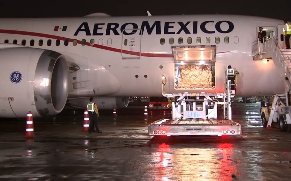 La aeronave comercial, un Boeing 787-8 Dreamliner, similar al avión presidencial, trajo a nuestro país 57 mil 600 caretas protectoras y 100 mil goggles.