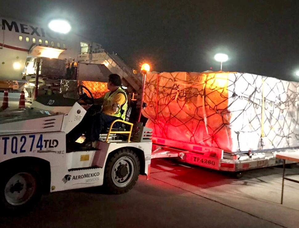 Ciudad de México, Lunes 27 de Abril de 2020, poderycrítica.- Para que las y los trabajadores de la salud, primera línea de defensa en el combate a la pandemia del COVID-19, puedan realizar su valioso trabajo de manera segura y eficiente, el día de hoy llegó a México el sexto vuelo del puente aéreo instalado entre México y China, con un cargamento de 153 mil caretas médicas.