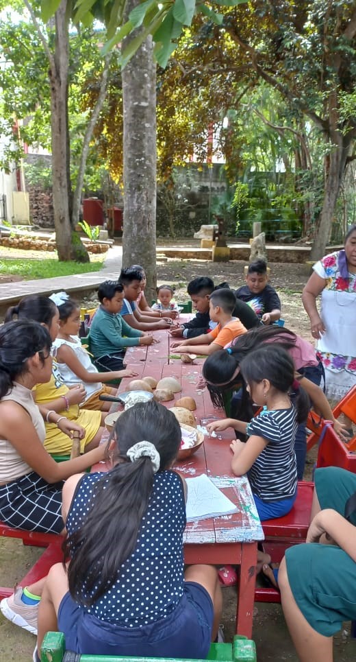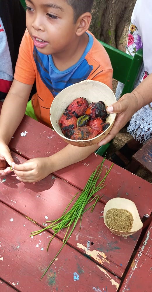 Igualmente, se les mostraron videos relacionados con la civilización maya y se les enseñó la técnica para confeccionar tortillas y gorditas (penkuch) y la preparación del platillo llamado sikli p’aak usando el molcajete.