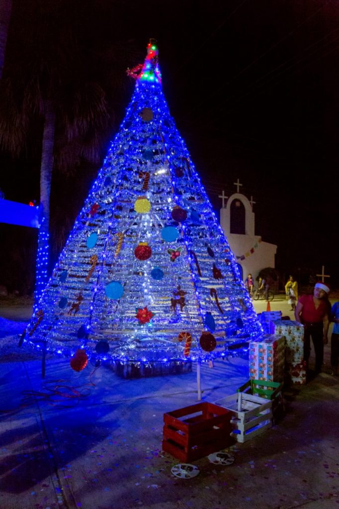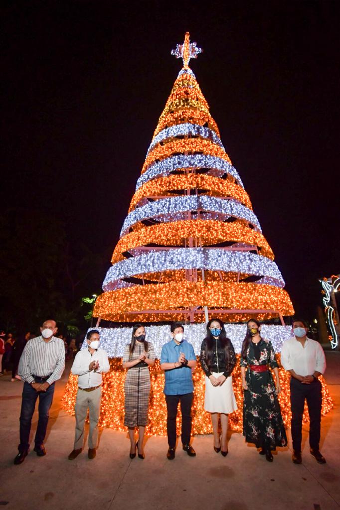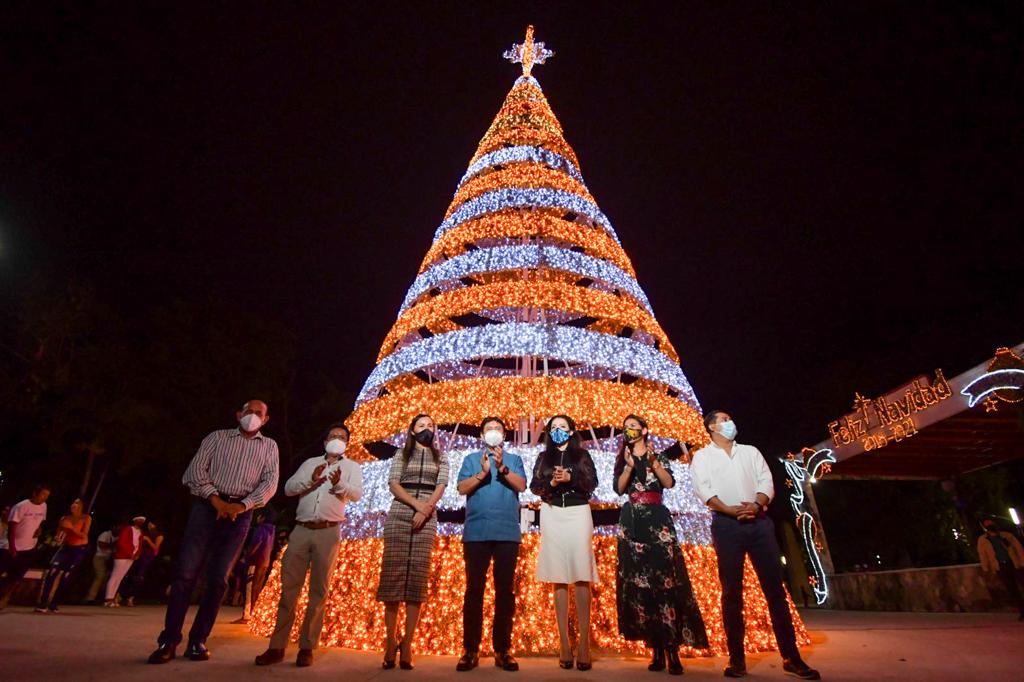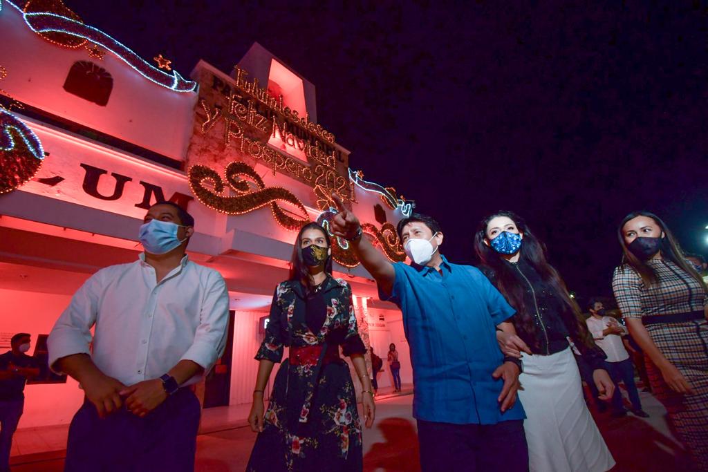 Tulum, Q. Roo, jueves 03 de Diciembre de 2020, poderycrítica.- El inicio de las fiestas decembrinas en Tulum, se llevó a cabo con el encendido de la ornamentación navideña del palacio municipal y la delegación de Chanchén Palmer, a cargo del presidente municipal Víctor Mas Tah y su esposa la presidenta honoraria del Sistema DIF Tulum, Celia Mas, en el que participaron también regidores, el secretario general de la comuna, funcionarios de su gabinete y familias tulumnenses.