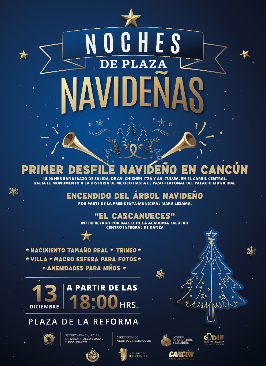 PODER Y CRÍTICA | Cancún, Quintana Roo.- Con un derrotero conformado por integrantes de academias de danza, asociaciones y dependencias municipales, se llevará a cabo el Primer Desfile Navideño en Cancún, el cual tiene como objetivo resaltar la alegría, la calidez y el color de las celebraciones decembrinas, así como fomentar los valores de amor y unión familiar.