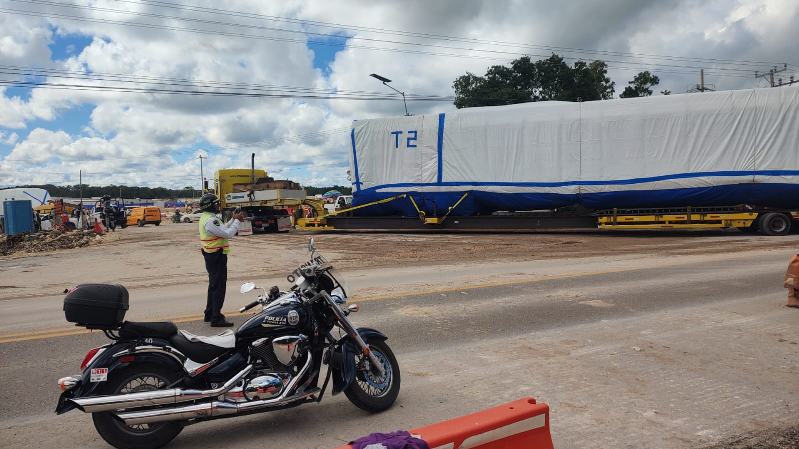La llegada de estos compartimentos requirió la instalación de un dispositivo de seguridad vial, y el cierre temporal de un carril de esta carretera.