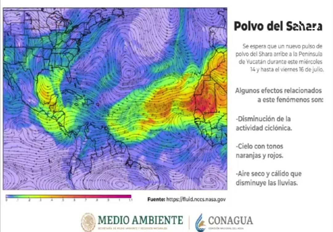 En un comunicado, la (COEPROC) señaló que «Con base en el Servicio Meteorológico Nacional, se informa que una segunda nube de polvo del Sahara estará influenciando a Quintana Roo a partir de este miércoles 14 y hasta el viernes 16, por lo que se pide a la ciudadanía mantenerse informada a través de las fuentes oficiales».