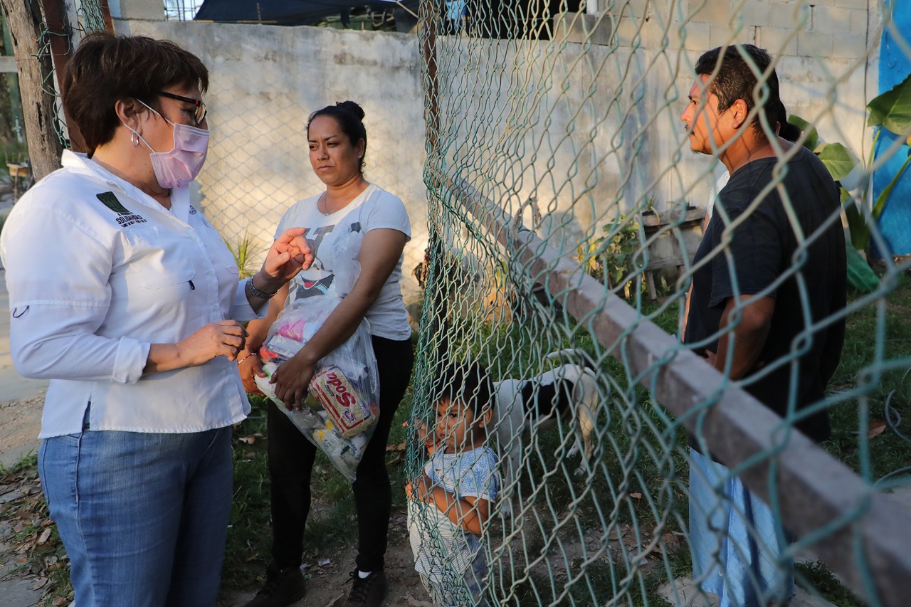 Este día, brigadistas del gobierno del estado, elementos de la Secretaría de Justicia Social y Participación Ciudadana, Instituto de la Juventud, DIF Solidaridad, así como personal de la Guardia Nacional y la Policía Municipal, entregaron despensas en Las Torres, la comunidad de Los Sauces, la colonia Ejido e In House.