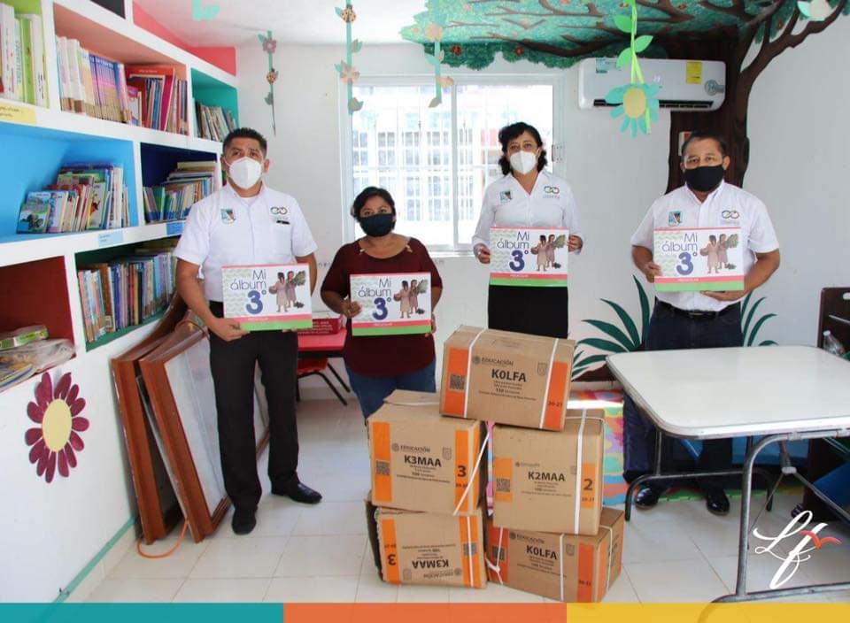 «Trabajamos en equipo en todas las áreas y como ejemplo de ello, en coordinación con las autoridades educativas y directores de escuelas, trasladamos a nuestra cabecera municipal y Leona Vicario todos los libros destinados a 2 mil 710 alumnos de primaria y 377 de preescolar», detalló la presidente municipal, Laura Fernández Piña.