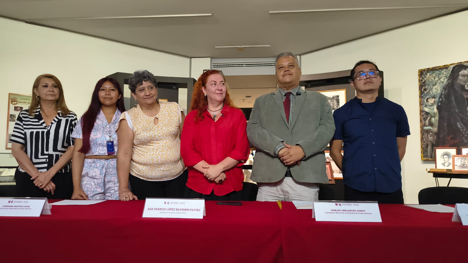Durante conferencia de prensa para inaugurar la Feria, nos acompañaron Ana Francis López Bayghen Patiño, Secretaria de Cultura de la Ciudad de México, Carlos Cervantes Godoy, Coordinador General de la Autoridad del Centro Histórico, Loredana Montes López, Directora del Fideicomiso del Centro Histórico, María Inés Madinaveitia Ramírez, Coordinadora de la Oficina del Consejo Internacional de Museos (ICOM) México y directivos de los museos participantes.