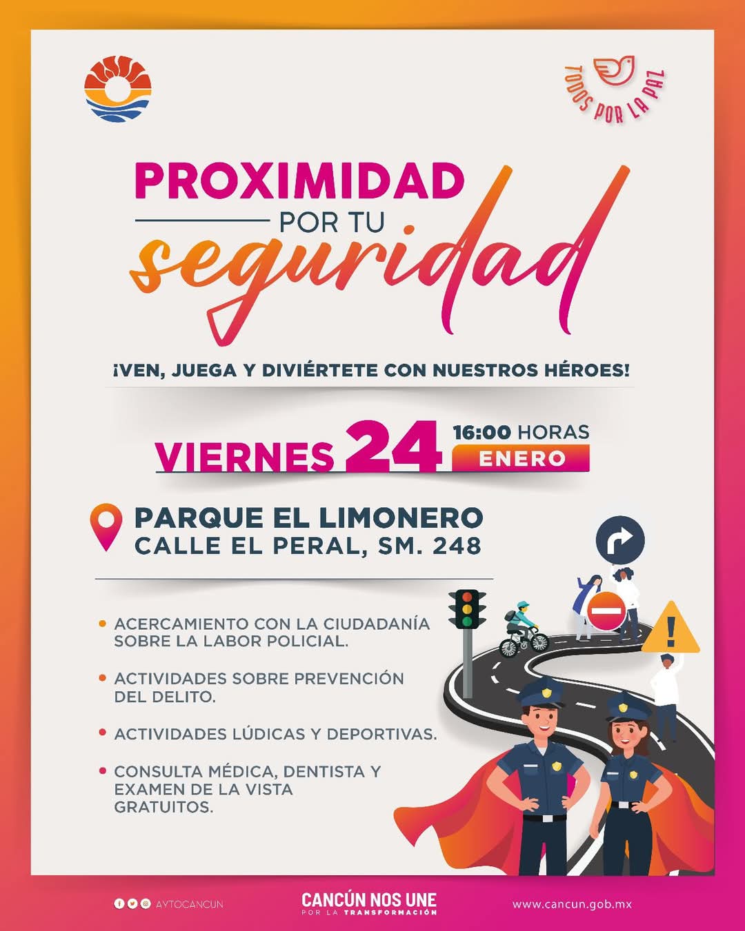 PODER Y CRÍTICA | REDACCIÓN | Como parte de la Prevención de las Violencias y la Delincuencia “Todos por la Paz”, el Ayuntamiento de Benito Juárez llevará a cabo este viernes el programa “Proximidad por tu seguridad” en la Supermanzana 248, en el que se buscará la participación ciudadana en diferentes actividades lúdicas.