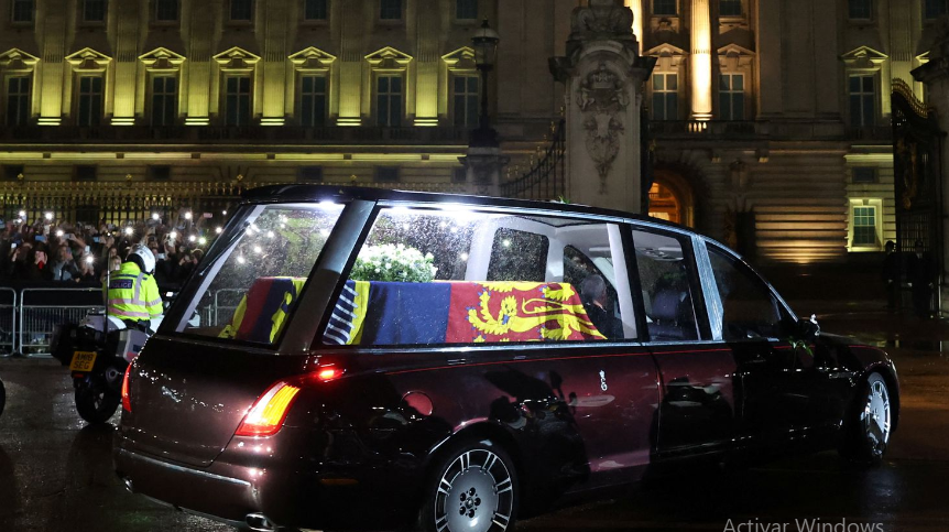 El féretro de Isabel II reposará durante la noche en una sala del palacio de Buckingham, donde miembros de la familia real y empleados de la Corona podrán darle su último adiós antes de la procesión del miércoles que la llevará a las Casas del Parlamento.