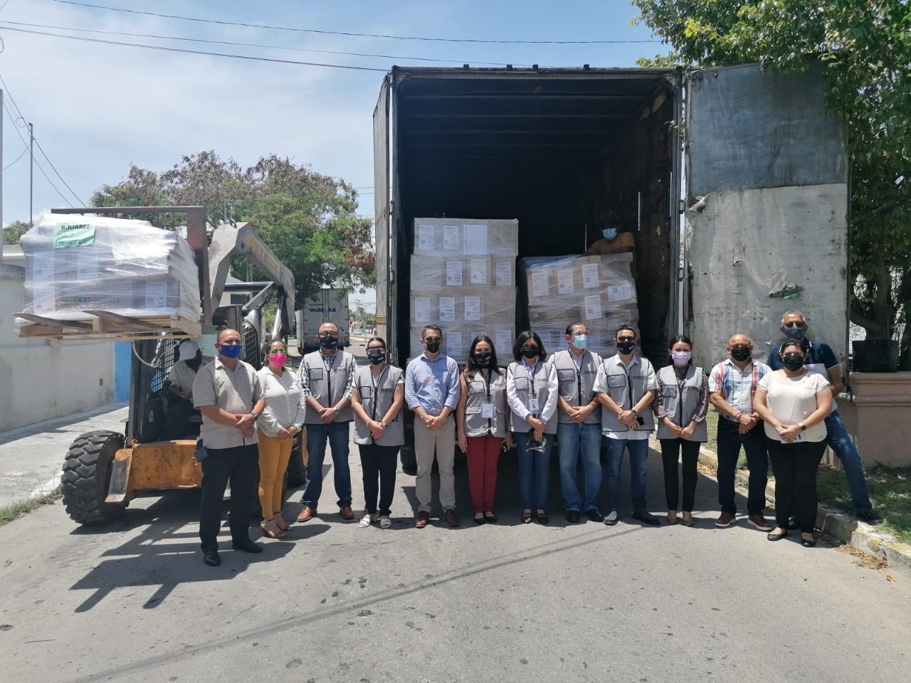 Chetumal, Q. Roo, jueves 13 de mayo de 2021, poderycrítica. – Procedentes de los talleres de producción de la empresa “Formas Finas y Materiales”, en la Ciudad de México, hoy vía terrestre y en camiones de carga arribaron a las instalaciones centrales del Instituto Electoral de Quintana Roo, la documentación y el material electoral que será utilizado para las elecciones del 6 de junio.