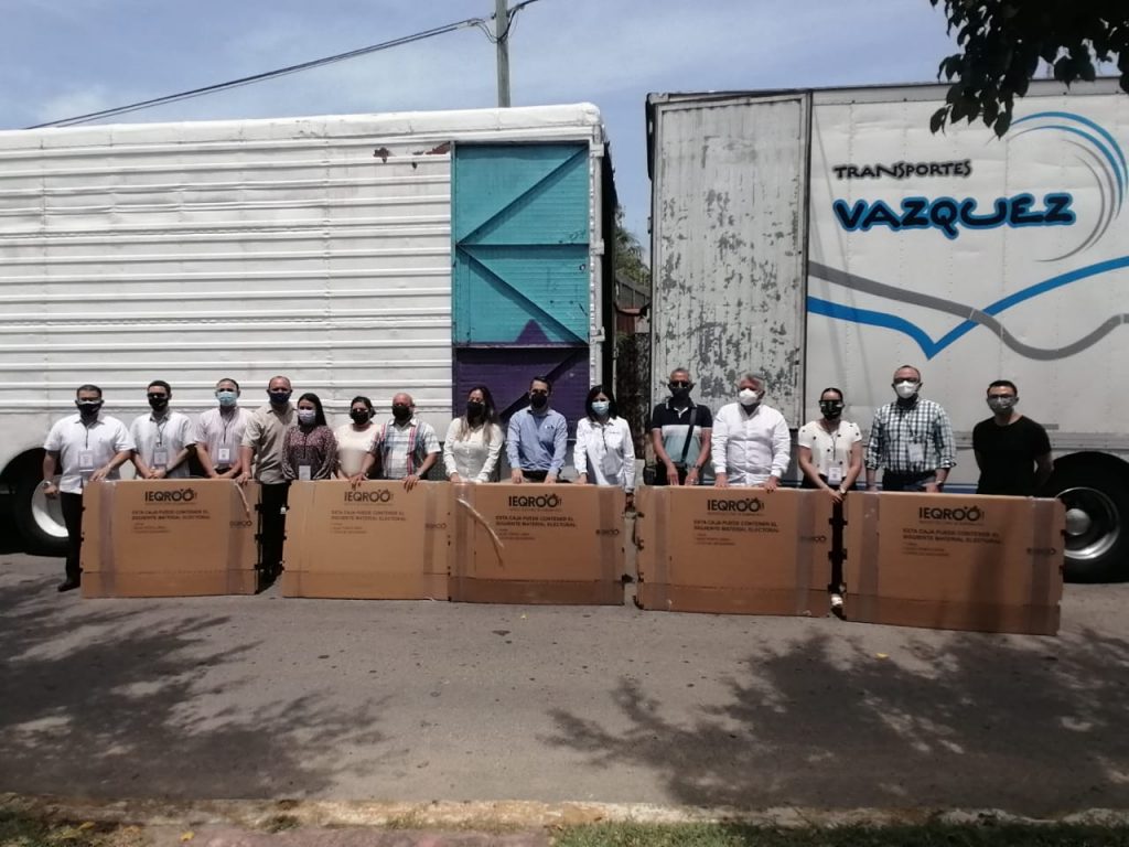 Cabe destacar que el Instituto Electoral consciente de la importancia de prevenir riesgos de contagios por COVID-19, entre su personal administrativo y operativo, dotó de material de desinfección a los once Consejos Municipales, el cual consiste en cubrebocas, caretas, guantes látex, liquido sanitizante, gel antibacterial, toallas desinfectantes, toallas sanitas, jabón líquido, franelas, tapetes sanitizantes y pistolas sanitizantes.