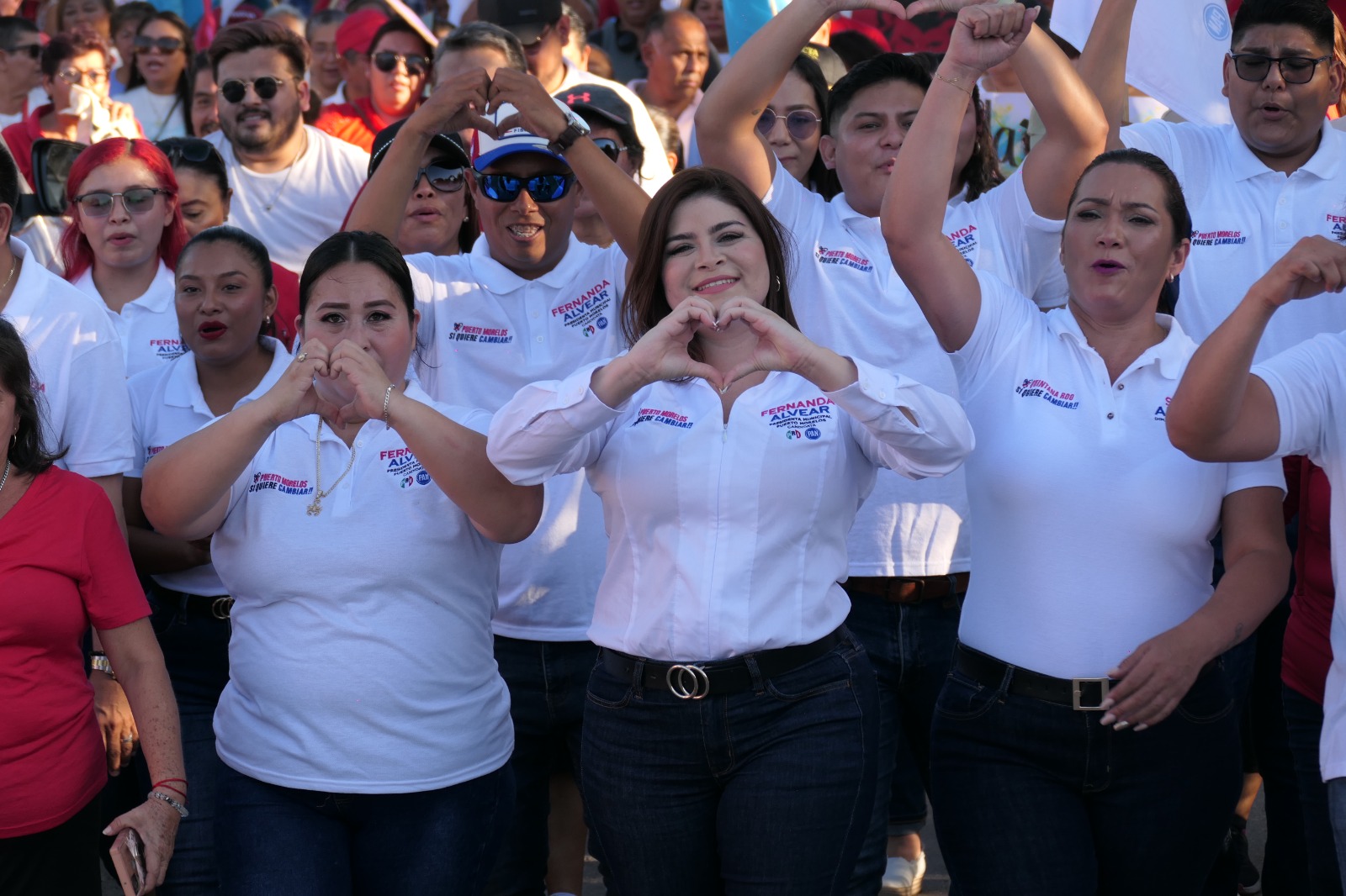 En compañia de simpatizantes, los integrantes de su planilla y respaldada por Miguel Angel Zetina y Richard Aguilar, dirigentes municipales del PRI y PAN, así como la candidata a diputada por el Distrito I, Saydi Anduze; María Fernanda Alvear agradeció a militantes de la coalición para integrar un acuerdo de bienestar colectivo, el cual se hará realidad ejerciendo el voto por autoridades más humanas, conscientes, preparadas y más sensibles a las añejas necesidades de la ciudadanía. De manera especial se dirigió: al ama de casa, a la madre trabajadora, al padre de familia, al ejidatario, al comerciante, al estudiante, al trabajador y al empresario, a los adultos mayores y al servidor público; «llegó la hora de manifestarnos y lograr ese cambio que todos deseamos».