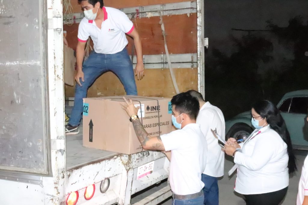 PODER Y CRÍTICA | SAMUEL CAAMAL | El Instituto Nacional Electoral (INE) en Quintana Roo, confirmó que arribó a la 02 Junta Distrital en Chetumal, el camión de carga de la empresa de Transporte “Grupo MYM, S.A. de CV que transportó los materiales electorales y la documentación a utilizar para la Jornada de Revocación de Mandato del próximo 10 de abril.