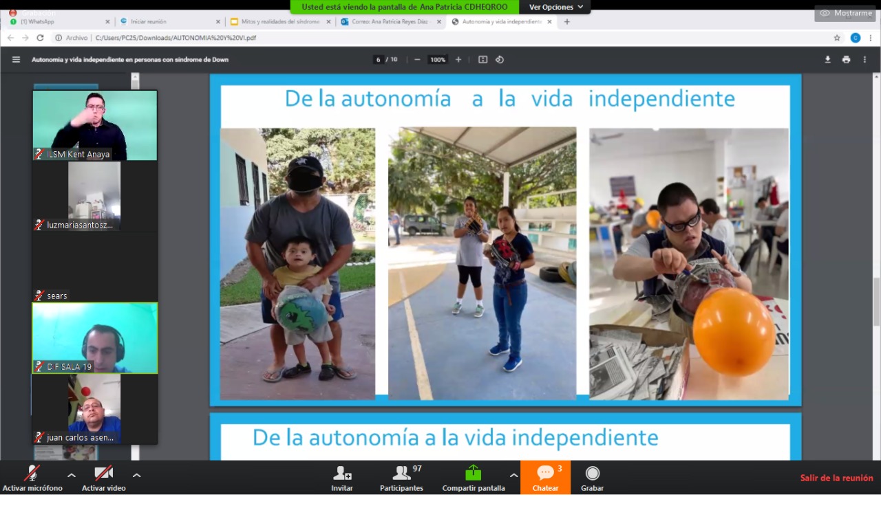 Chetumal, Q. Roo, Martes 23 de Marzo de 2021, poderycrítica.-  En el marco de la conmemoración del Día Mundial del Síndrome de Down, el DIF Quintana Roo que preside la señora Gaby Rejón de Joaquín, lleva a cabo virtualmente las “Jornadas por la Inclusión y los Derechos Humanos de las personas con Discapacidad”, con 116 participantes, quienes a través de ponencias y conversatorios podrán conocer e informarse sobre el tema.