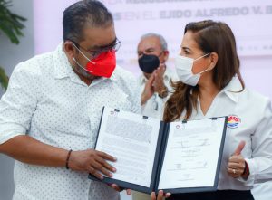 El Ayuntamiento de Benito Juárez, encabezado por la presidente municipal Mara Lezama, y el Ejido Alfredo V. Bonfil, a través de su presidente, Reyes Antonio de la Rosa Muñoz, firmaron el Convenio Marco de Coordinación y Concertación de Acciones para la Regularización de los Asentamientos Humanos localizados en ese lugar y su anexo.