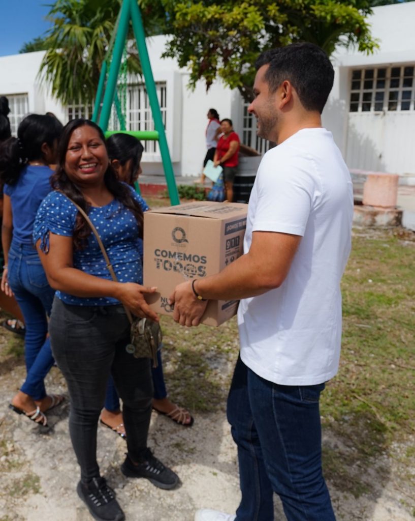 PODER Y CRÍTICA | REDACCIÓN | A ras de piso y cercano, como es el ejemplo de la Gobernadora Mara Lezama, el Secretario de Bienestar, Pablo Bustamante Beltrán, entregó paquetes alimentarios del programa “Comemos Tod@s” a la familia cancunense en las regiones 220, 228 y 247, para garantizar que lleven seguridad alimentaria y bienestar a sus hogares.